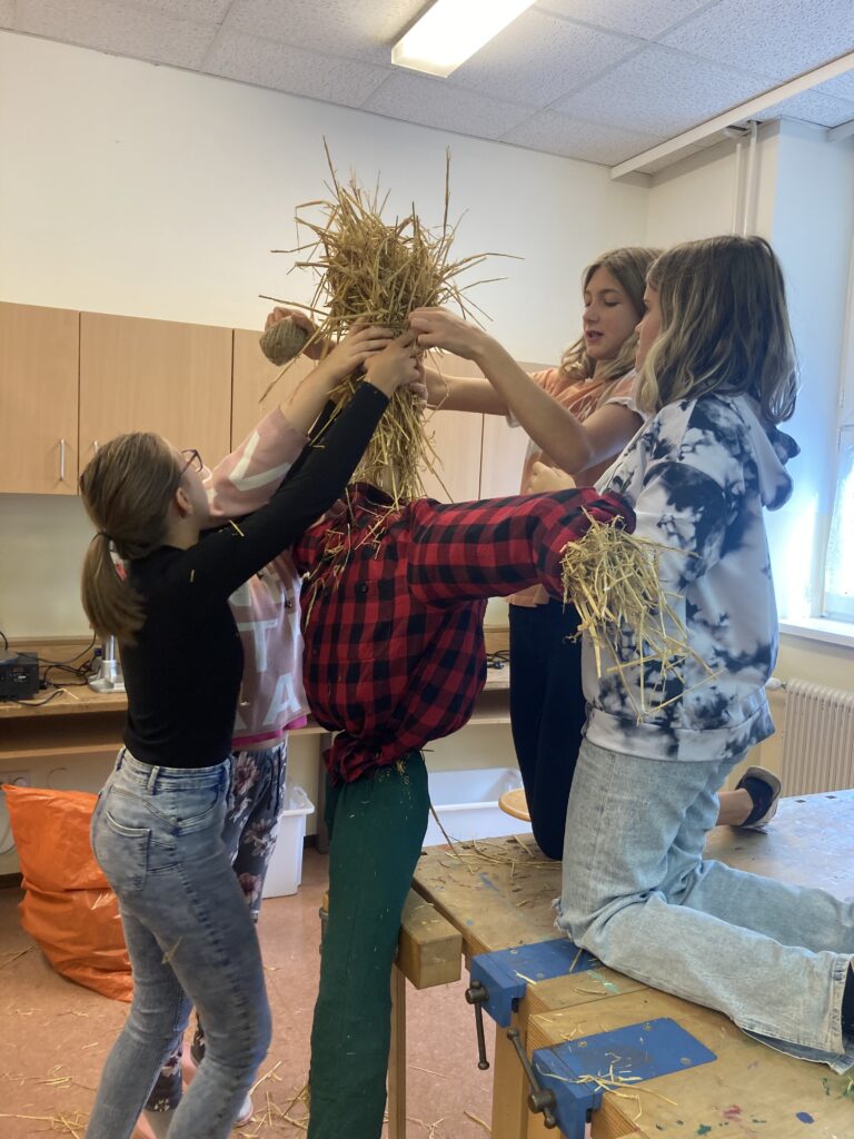 Im Rahmen des Werkunterrichts durften die Schüler der 3. Klasse ihrer Phantasie beim Gestalten einer herbstlichen Vogelscheuche freien Lauf lassen.